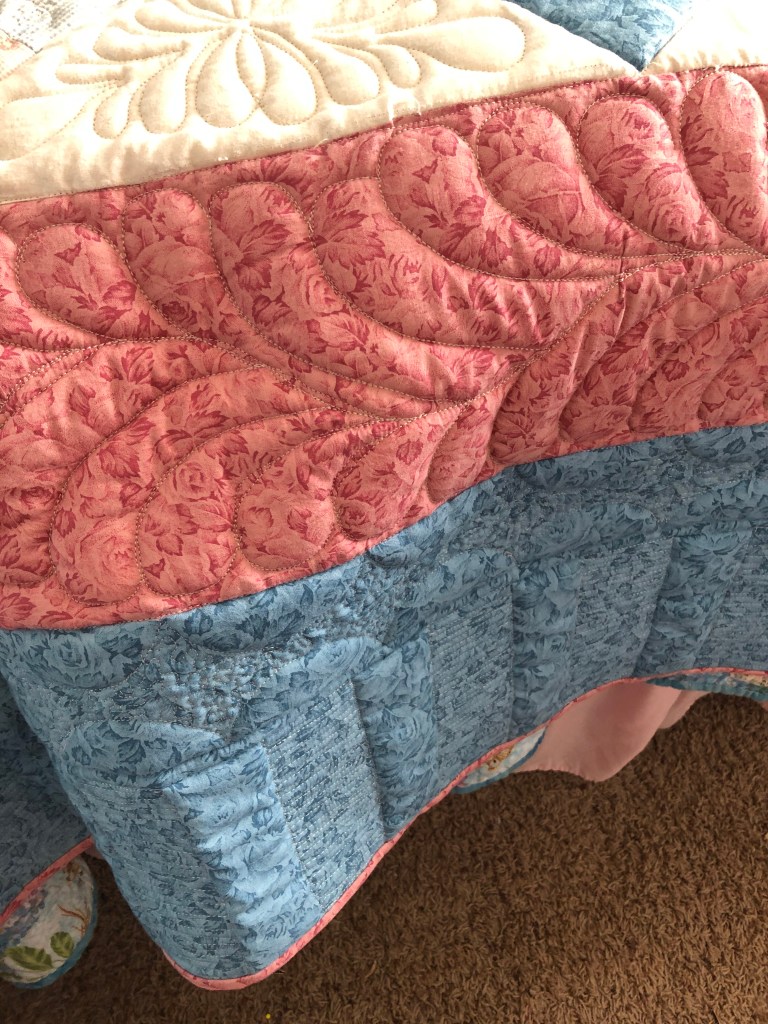 Lover’s Knot Quilt Posted byroundrobinquiltingJuly 1, 2020July 1, 2020Posted inUncategorized This quilt top is custom quilting with a double batting with wool to give it puffiness and warmth. Share this: Click to share on X (Opens in new window) X Click to share on Facebook (Opens in new window) Facebook Like Loading... Related